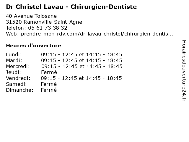 | Lundi | 09:15-12:45 et 14:15-18:45 |