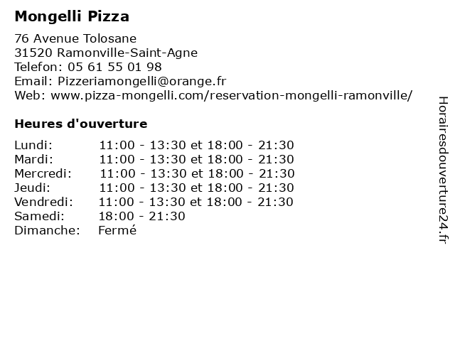 | Mardi | 11:00-13:30 et 18:00-21:30 |