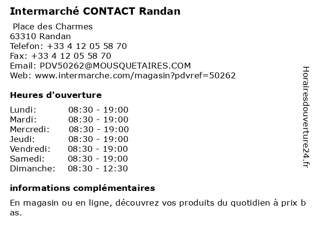 Termes de recherche pour Intermarché CONTACT Randan:intermarché, contact, randan |