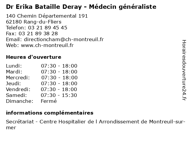 1 École primaire publique Gabriel Deray (Distance: 16,29 km) . Rue du Bosquet, 80120 Rue cours, deray, education, gabriel, primaire, publique, services, école 2 Dr Mathieu Bataille - Dermatologue et vénérologue (Distance: 55,51 km) - Route de Blendecques, 62505 Saint-Omer bataille, consultation, dermatologue, docteur, dr, et, mathieu, med, médecin, médecine, traitement, vénérologue 3 Duvivier Bataille Melanie (Distance: 57,43 km) 5 Domaine De La Palme, 62370 Nortkerque bataille, duvivier, melanie, restaurants 4 Dr Valery Denhier - Médecin généraliste (Distance: 0,00 km) 140 Chemin Départemental 191, 62180 Rang-du-Fliers consultation, denhier, docteur, dr, généraliste, med, médecin, médecine, traitement, valery 5 Dr Maurice Robin - Médecin généraliste (Distance: 0,00 km) 140 Chemin Départemental 191, 62180 Rang-du-Fliers consultation, docteur, dr, généraliste, maurice, med, médecin, médecine, robin, traitement 6 Dr Jacques Samarcq - Médecin généraliste (Distance: 0,00 km) 140 Chemin Départemental 191, 62180 Rang-du-Fliers consultation, docteur, dr, généraliste, jacques, med, médecin, médecine, samarcq, traitement |