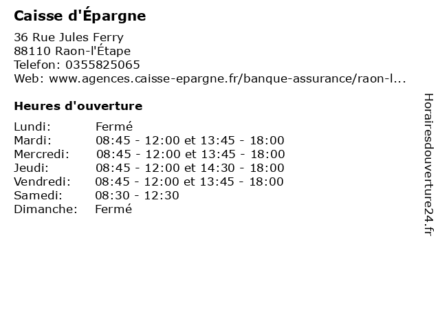 1 Caisse d'Épargne (Distance: 5,87 km) 27, rue de l'Hôtel de Ville, 88420 Moyen-Moutier banque, caisse, carte, d'epargne, d'épargne, services 2 Caisse d'Épargne (Distance: 15,27 km) 58 Rue Thiers, 88100 Saint-Dié-des-Vosges banque, caisse, carte, d'epargne, d'épargne, services 3 Caisse d'Épargne (Distance: 15,78 km) 32 Quai Sadi Carnot, 88100 Saint-Dié-des-Vosges banque, caisse, carte, d'epargne, d'épargne, services 4 Caisse d'Épargne (Distance: 17,03 km) 61 Rue Carnot, 88700 Rambervillers banque, caisse, carte, d'epargne, d'épargne, services 5 Caisse d'allocations familiales (Caf) des Vosges (Distance: 0,20 km) 10 rue Georges Clémenceau, 88110 Raon-l'Étape accueil, allocations, caf, caisse, d'allocations, de, des, familiales, l'étape, raon, vosges, étape 6 Caisse Primaire D'Assurance Maladie (Distance: 9,22 km) 2 Rue Adrien-Michaut, 54120 Baccarat administration, assoc, caisse, d'assurance, maladie, primaire, services, services publics |