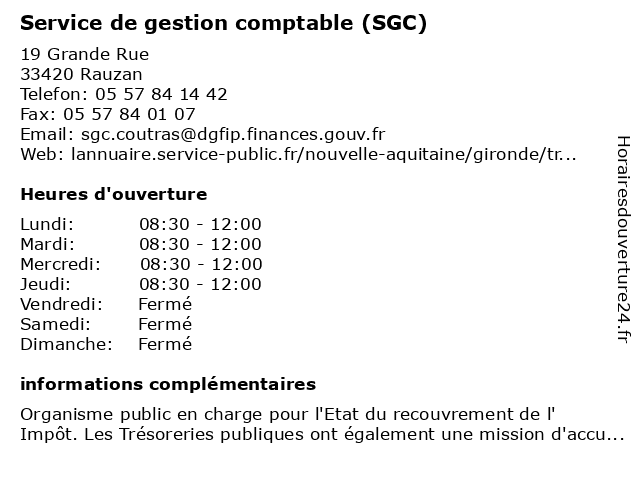 Termes de recherche pour Service de gestion comptable (SGC):de, administration, service, rauzan, finances, trésor, gestion, impôts, public, trésorerie, publiques, comptable, sgc |