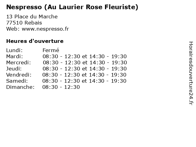 | Samedi | 08:30-12:30 et 14:30-19:30 |