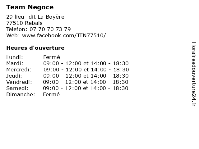 | Samedi | 09:00-12:00 et 14:00-18:30 |