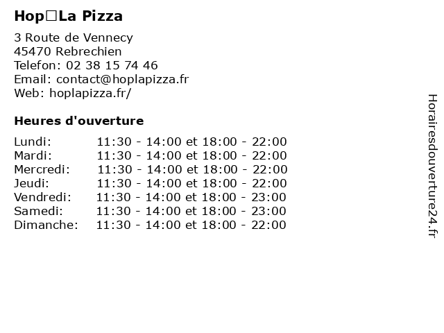 | Mercredi | 11:30-14:00 et 18:00-22:00 |