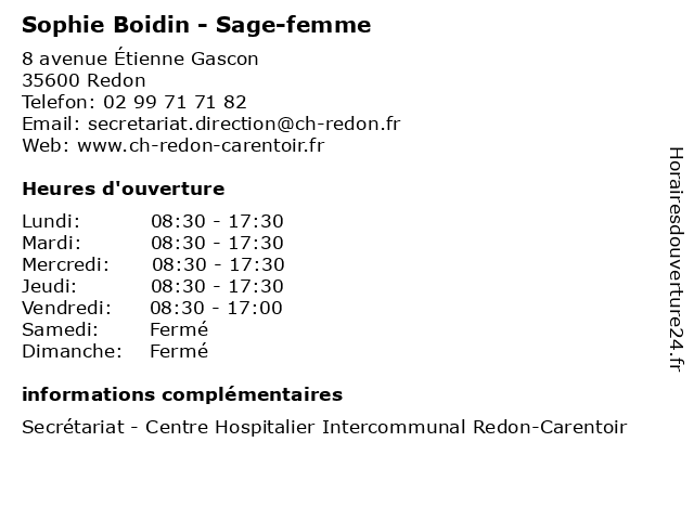 1 Sophie Richefort - Sage-femme (Distance: 0,00 km) 8 avenue Étienne Gascon, 35600 Redon consultation, docteur, dr, femme, med, médecin, richefort, sage, sophie, traitement 2 Anne-Sophie Douet - Ostéopathe (Distance: 18,22 km) 2 Rue Henri de Boisfleury, 44290 Guémené-Penfao anne, douet, osteo, osteopathe, ostéopathe, sante, soins, sophie 3 Chanut Sophie (Distance: 19,86 km) 8 Lotissement du Stade, 56910 Saint-Nicolas-du-Tertre chanut, sophie 4 Benetton (Distance: 58,66 km) . Rue James Cook, 44800 Saint-Herblain beaute, benetton, bijoux, chaussures, lingerie, maison, mode enfant, mode femme, mode homme, restaurant, sport 5 Comptoir des Cotonniers (Distance: 58,66 km) . Rue James Cook, 44800 Saint-Herblain beaute, bijoux, chaussures, comptoir, cotonniers, des, lingerie, maison, mode enfant, mode femme, mode homme, restaurant, sport 6 Cop.Copine (Distance: 58,66 km) . Rue James Cook, 44800 Saint-Herblain beaute, bijoux, chaussures, cop.copine, lingerie, maison, mode enfant, mode femme, mode homme, restaurant, sport |