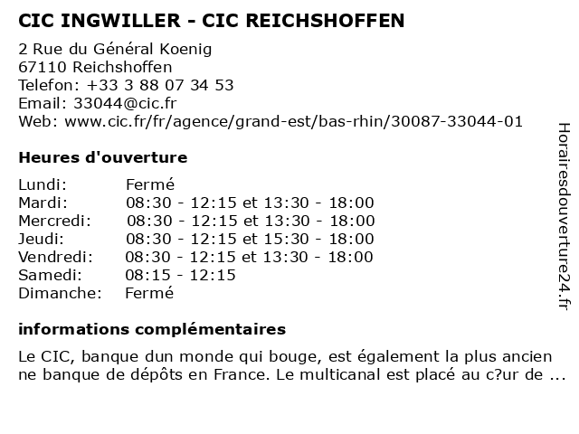 Termes de recherche pour CIC INGWILLER - CIC REICHSHOFFEN:cic, reichshoffen, ingwiller |