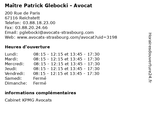 | Lundi | 08:15-12:15 et 13:45-17:30 |
