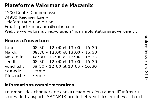 Lundi | 08:30-12:00 et 13:00-16:30 |