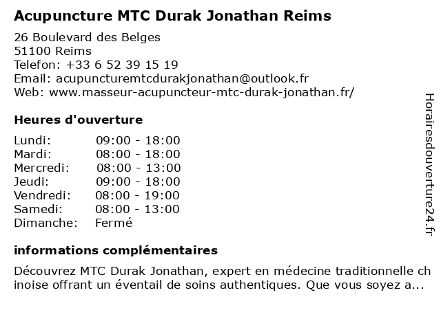 Termes de recherche pour Acupuncture MTC Durak Jonathan Reims:reims, jonathan, durak, acupuncture, mtc |