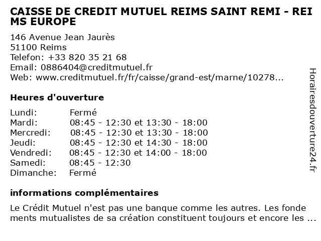 Termes de recherche pour CAISSE DE CREDIT MUTUEL REIMS SAINT REMI - REIMS EUROPE:de, saint, reims, crédit, mutuel, caisse, europe, remi |