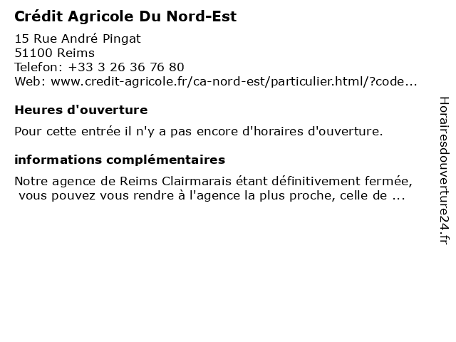 | Appeler Crédit Agricole Du Nord-Est | |