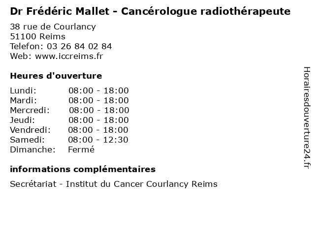 1 Dr Michel Dray - Cancérologue radiothérapeute (Distance: 0,00 km) 38 rue de Courlancy, 51100 Reims cancérologue, consultation, docteur, dr, dray, med, michel, médecin, médecine, radiothérapeute, traitement 2 Dr Philippe Colin - Cancérologue radiothérapeute (Distance: 0,00 km) 38 rue de Courlancy, 51100 Reims cancérologue, colin, consultation, docteur, dr, med, médecin, médecine, philippe, radiothérapeute, traitement 3 Dr Bruno Cutuli - Cancérologue radiothérapeute (Distance: 0,00 km) 38 rue de Courlancy, 51100 Reims bruno, cancérologue, consultation, cutuli, docteur, dr, med, médecin, médecine, radiothérapeute, traitement 4 Dr Charles-Gaétan Hemery - Cancérologue radiothérapeute (Distance: 0,00 km) 38 rue de Courlancy, 51100 Reims cancérologue, charles, consultation, docteur, dr, gaetan, gaétan, hemery, med, médecin, médecine, radiothérapeute, traitement 5 Dr. Lorraine Krebs - Cancérologue radiothérapeute (Distance: 0,00 km) 38 bis rue de Courlancy, 51100 Reims cancérologue, consultation, docteur, dr., krebs, lorraine, med, médecin, médecine, oncologue, radiothérapeute, radiothérapeuthe, traitement 6 Dr Grégoire Bouche - Cancérologue radiothérapeute (Distance: 2,05 km) 1 rue du Général Koenig, 51100 Reims bouche, cancérologue, consultation, docteur, dr, gregoire, grégoire, med, médecin, radiothérapeute, traitement |