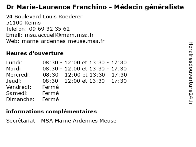 | Lundi | 08:30-12:00 et 13:30-17:30 |