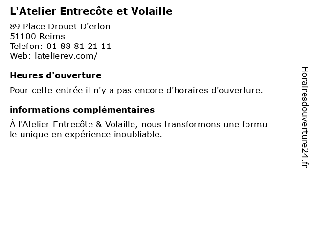 | Appeler L'Atelier Entrecôte et Volaille | |