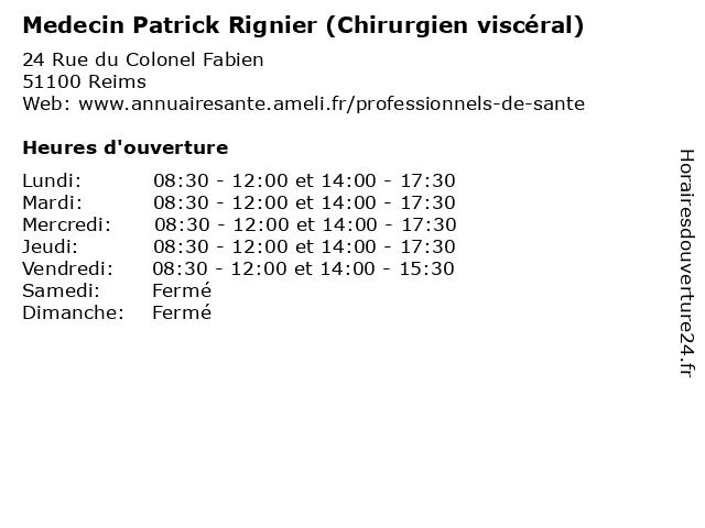 | Lundi | 08:30-12:00 et 14:00-17:30 |