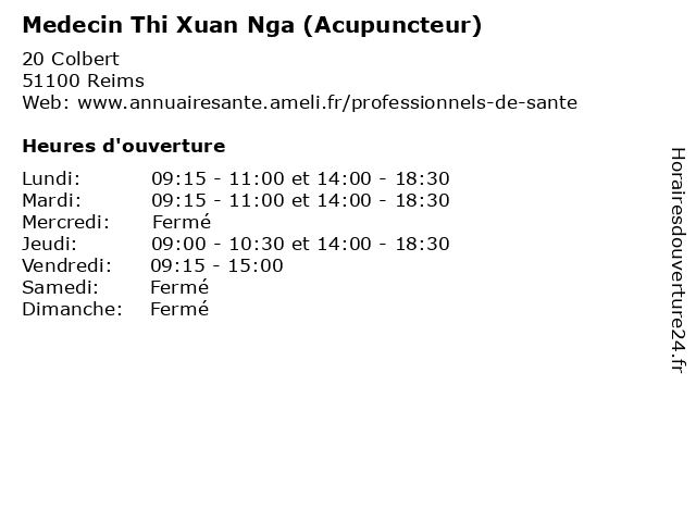 | Jeudi | 09:00-10:30 et 14:00-18:30 |