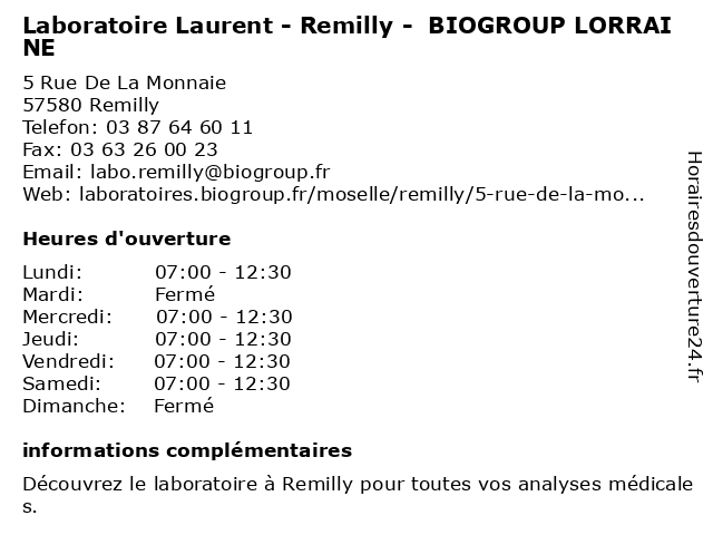 Termes de recherche pour Laboratoire Laurent - Remilly - BIOGROUP LORRAINE:laurent, laboratoire, lorraine, remilly, biogroup, dépistages, laboratoire de diagnostic |