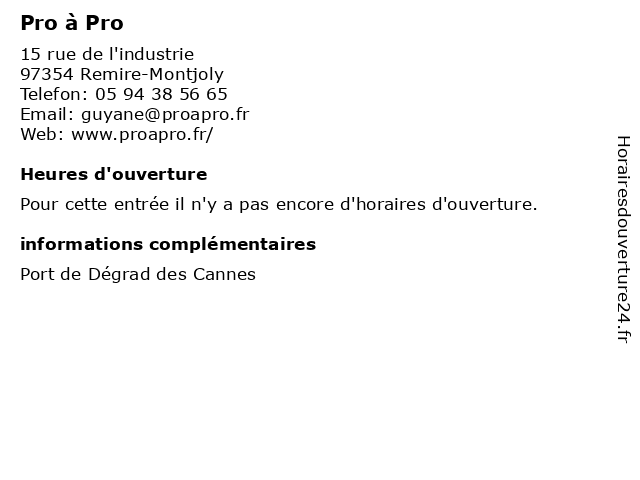 1 Transitions Pro Guyane (Distance: 6,14 km) 971 Route de Montjoly, 97354 Remire Montjoly bilans, centre, compétences, formation, guyane, pro, professionnelle, transitions 4 Master Pro (Distance: 11,31 km) s/n Route du Larivot, 97351 Matoury fourniture, master, matériel, outillage, pro 5 Au Resto Du Coin (Distance: 3,96 km) 1 rue Georges Guéril, 97300 Cayenne au, boissons, coin, du, plats, repas, restaurant, restauration, resto 6 Carrefour Contact (Distance: 7,09 km) 2261 Route de Montjoly, 97354 Remire-Montjoly alimentaire, alimentation, carrefour, contact, courses, distributeur, supermarché, supérette, épicerie |