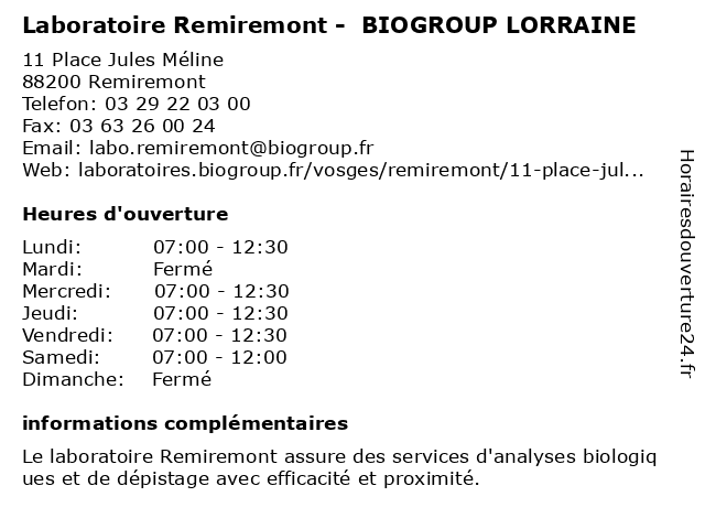 Termes de recherche pour Laboratoire Remiremont - BIOGROUP LORRAINE:remiremont, laboratoire, lorraine, biogroup, dépistages, laboratoire de diagnostic |