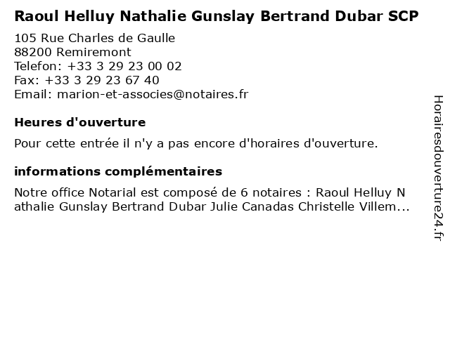 | Appeler Raoul Helluy Nathalie Gunslay Bertrand Dubar SCP | |