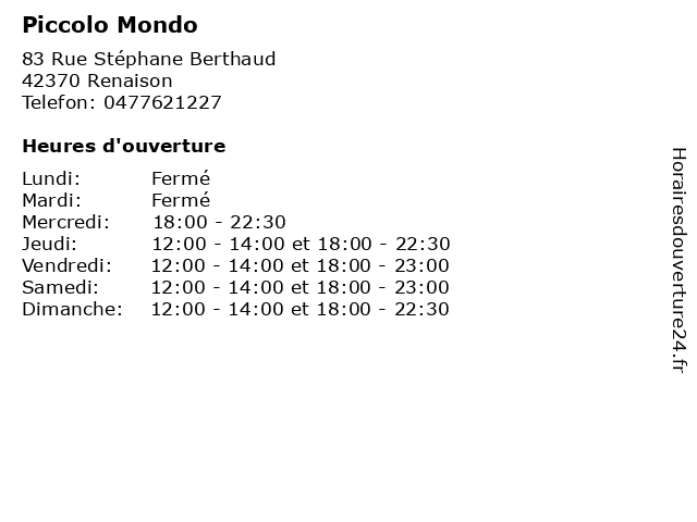 | Termes de recherche pour Piccolo Mondo:bernard, restaurants, madame, mondo, piccolo, rosalba |