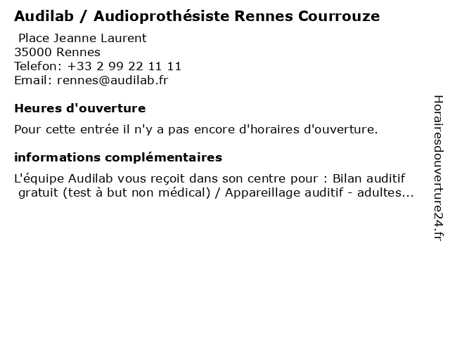 | Appeler Audilab / Audioprothésiste Rennes Courrouze | |