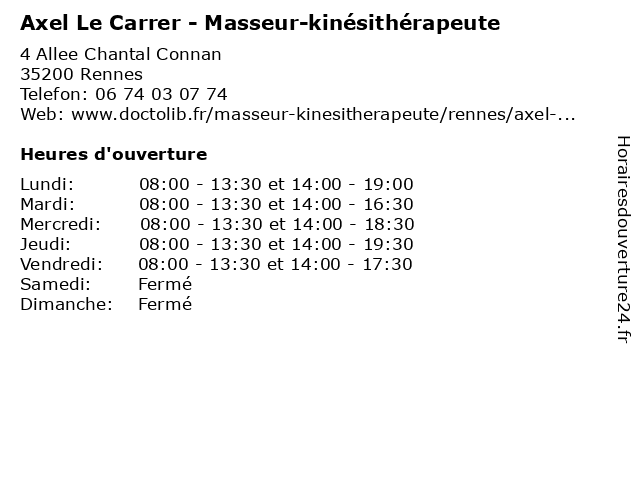 | Lundi | 08:00-13:30 et 14:00-19:00 |