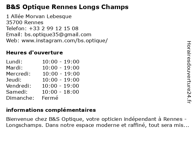 Termes de recherche pour B&S Optique Rennes Longs Champs:champs, rennes, optique, longs, b&s |
