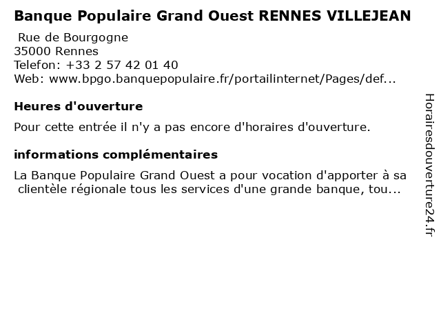 | Appeler Banque Populaire Grand Ouest RENNES VILLEJEAN | |