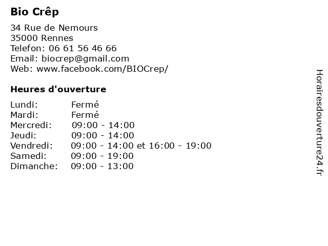 | Vendredi | 09:00-14:00 et 16:00-19:00 |