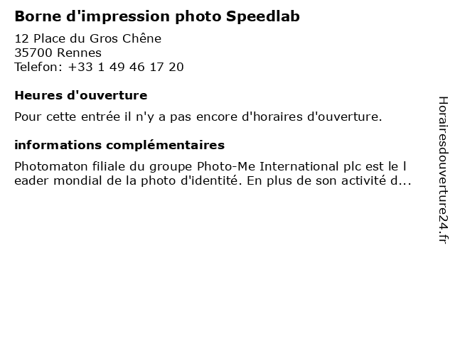 | Appeler Borne d'impression photo Speedlab | |