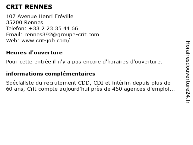 Termes de recherche pour CRIT RENNES:rennes, crit |