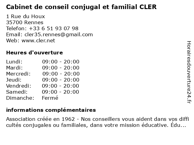 Termes de recherche pour Cabinet de conseil conjugal et familial CLER:et, de, cabinet, conseil, familial, cler, conjugal |