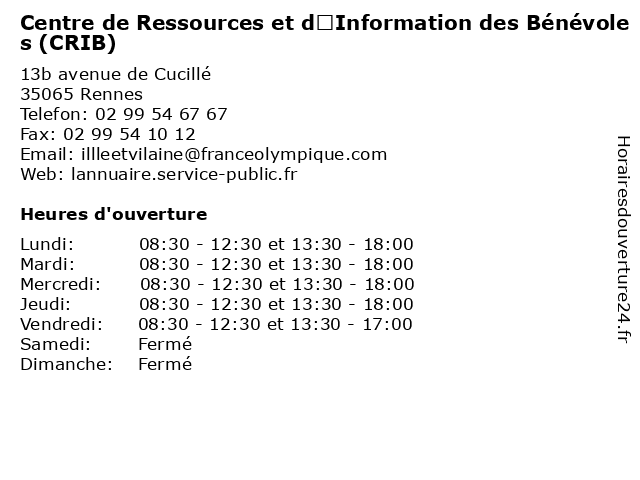 | Vendredi | 08:30-12:30 et 13:30-17:00 |
