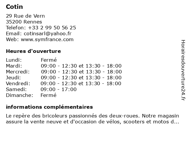 | Mercredi | 09:00-12:30 et 13:30-18:00 |