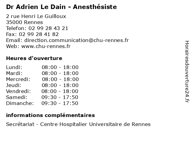 Termes de recherche pour Dr Adrien Le Dain - Anesthésiste:le, med, traitement, docteur, adrien, médecin, consultation, dr, anesthésiste, dain |