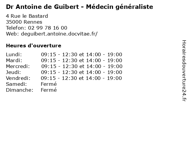 | Mercredi | 09:15-12:30 et 14:00-19:00 |