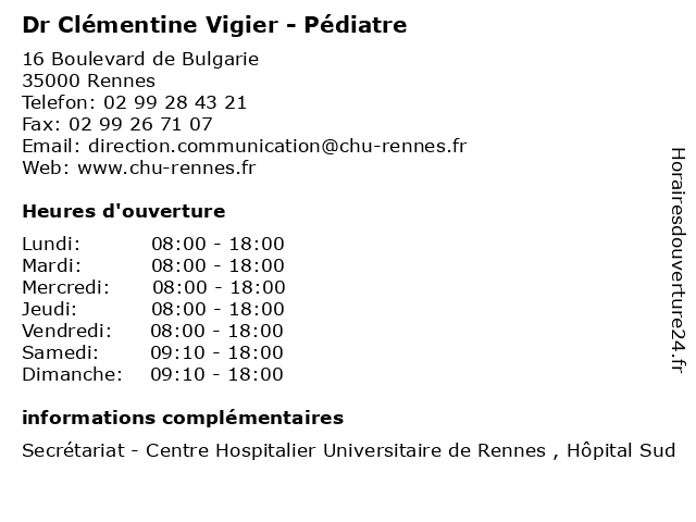 1 Dr David Briard - Pédiatre (Distance: 0,00 km) 16 Boulevard de Bulgarie, 35000 Rennes briard, consultation, david, docteur, dr, med, médecin, pédiatre, traitement 2 Dr Céline Chappe - Pédiatre (Distance: 0,00 km) 16 Boulevard de Bulgarie, 35000 Rennes celine, chappe, consultation, céline, docteur, dr, med, médecin, pédiatre, traitement 3 Dr Lena Damaj - Pédiatre (Distance: 0,00 km) 16 Boulevard de Bulgarie, 35000 Rennes consultation, damaj, docteur, dr, lena, med, médecin, pédiatre, traitement 4 Dr Clémentine Eloi - Pédiatre (Distance: 0,00 km) 16 Boulevard de Bulgarie, 35000 Rennes clementine, clémentine, consultation, docteur, dr, eloi, med, médecin, pédiatre, traitement 5 Maître Isabelle Garin-Vigier - Avocate (Distance: 3,97 km) 3 avenue Germaine Tillion, 35200 Rennes avocate, avocats, civils, droits, garin, isabelle, juridiques, maître, vigier 6 Dr Andrée-Claire de la Chapelle - Pédiatre (Distance: 5,54 km) 8 Rue du Chêne Germain, 35510 Cesson-Sévigné andrée, chapelle, claire, consulation, de, docteur, dr, enfants, la, médecin, nourrissons, pédiatre, pédiatrie, secrétariat, service |