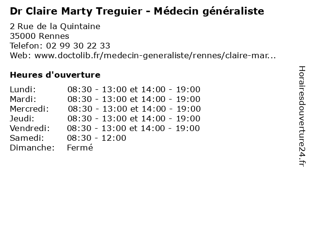 | Mardi | 08:30-13:00 et 14:00-19:00 |