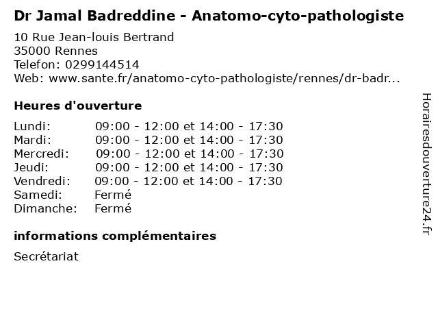 1 Dr Valere Claude - Anatomo-cyto-pathologiste (Distance: 0,00 km) 10 Rue Jean-Louis Bertrand, 35010 Rennes anatomo, claude, cyto, docteur, dr, medecin, pathologiste, sante, services, valere 2 Dr Gwendoline Daniel - Anatomo-cyto-pathologiste (Distance: 0,00 km) 10 Rue Jean-louis Bertrand, 35000 Rennes anatomo, consultation, cyto, daniel, docteur, dr, gwendoline, med, médecin, pathologiste, traitement 3 Dr Nathalie Stock - Anatomo-cyto-pathologiste (Distance: 0,00 km) 10 Rue Jean-louis Bertrand, 35000 Rennes anatomo, consultation, cyto, docteur, dr, med, médecin, nathalie, pathologiste, stock, traitement 4 Dr Philippe Noret - Anatomo-cyto-pathologiste (Distance: 0,00 km) 10 Rue Jean-louis Bertrand, 35000 Rennes anatomo, consultation, cyto, docteur, dr, med, médecin, noret, pathologiste, philippe, traitement 5 Dr Sophie Andrieu-Key - Anatomo-cyto-pathologiste (Distance: 0,00 km) 10 Rue Jean-louis Bertrand, 35000 Rennes anatomo, andrieu, consultation, cyto, docteur, dr, key, med, médecin, pathologiste, sophie, traitement 6 Dr Olivier Coue - Anatomo-cyto-pathologiste (Distance: 0,00 km) 10 Rue Jean-louis Bertrand, 35000 Rennes anatomo, consultation, coue, cyto, docteur, dr, med, médecin, olivier, pathologiste, traitement |