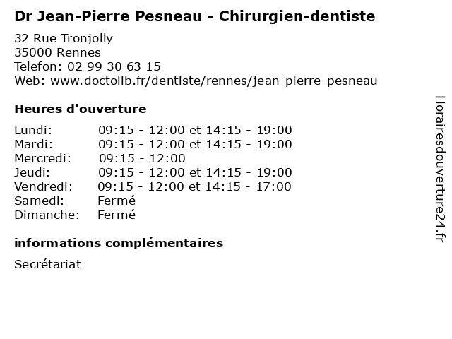 | Lundi | 09:15-12:00 et 14:15-19:00 |