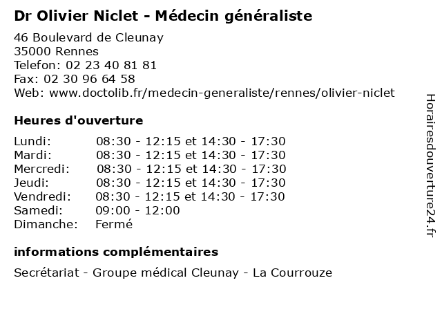 | Lundi | 08:30-12:15 et 14:30-17:30 |