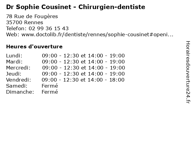 | Lundi | 09:00-12:30 et 14:00-19:00 |