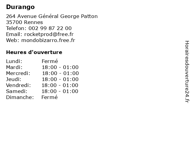 | Samedi | 18:00-01:00 |