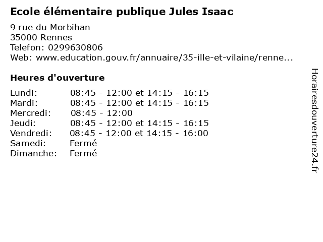 | Mardi | 08:45-12:00 et 14:15-16:15 |