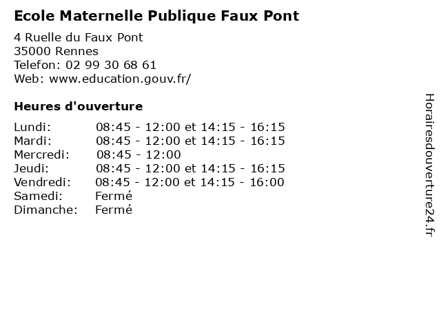 | Mardi | 08:45-12:00 et 14:15-16:15 |