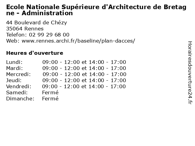1 Ecole Nationale Supérieure d'Architecture de Bretagne - Ecole (Distance: 0,00 km) 44 Boulevard de Chézy, 35064 Rennes appels d’offres, bretagne, conférences, d'architecture, de, ecole, nationale, supérieure 2 Bibliothèque de l'École Européenne Supérieure d’Art de Bretagne (Distance: 0,73 km) 34 Rue Hoche, 35000 Rennes bibliothèque, bretagne, de, d’art, européenne, l'école, livre, médiathèque, services, supérieure 3 EESAB - Ecole Européenne Supérieure d'Art de Bretagne (Distance: 0,73 km) 34 Rue Hoche, 35000 Rennes art, bretagne, d'art, de, design, ecole, eesab, européenne, graphisme, rennes, supérieure, école 4 Ecole supérieure de commerce et d'administration - Learning Center (Distance: 0,97 km) 15 rue du Professeur Jean Pecker, 35000 Rennes catalogues, center, collections, commerce, d'administration, de, ecole, et, learning, supérieure 5 Ecole supérieure de commerce et d'administration (Vacances Scolaires) (Distance: 0,97 km) 15 rue du Professeur Jean Pecker, 35000 Rennes catalogues, collections, commerce, d'administration, de, ecole, et, scolaires, supérieure, vacances 6 Ecole supérieure de commerce et d'administration (Hors Semestres de Cours) (Distance: 0,97 km) 15 rue du Professeur Jean Pecker, 35000 Rennes catalogues, collections, commerce, cours, d'administration, de, ecole, et, hors, semestres, supérieure |
