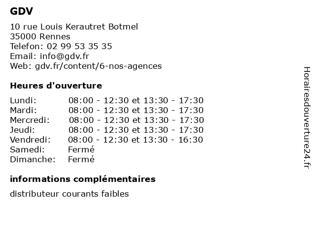 | Mercredi | 08:00-12:30 et 13:30-17:30 |