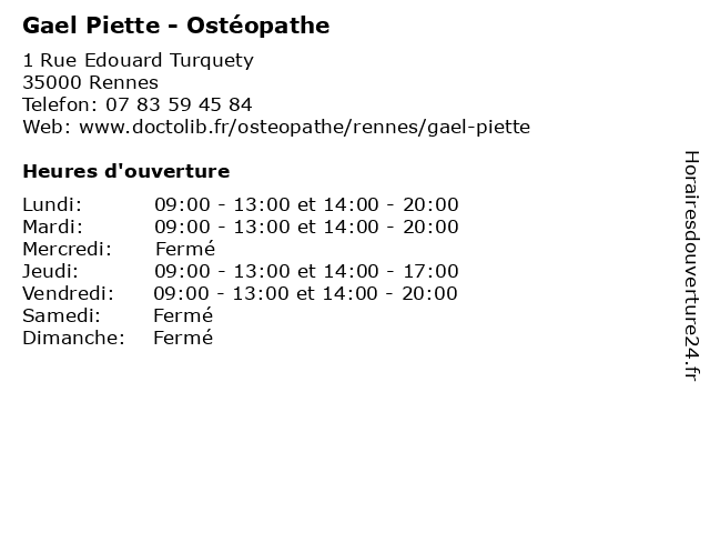 | Lundi | 09:00-13:00 et 14:00-20:00 |